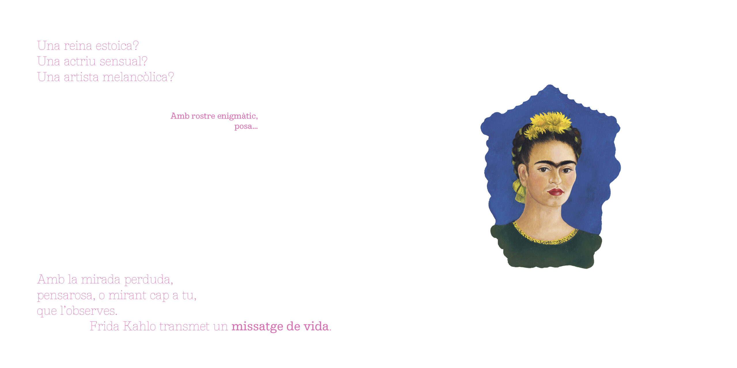 En The Frame [El marc], les flors de colors vius de Me?xic s’obren alegres tot fent rotllana. Enmig d’un blau intens, Frida Kahlo ens mira. Artista i model alhora, transmet un missatge de vida.